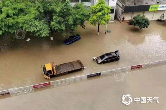 近期,广西北部遭遇强降雨,罗城县城低洼路段出现内涝。(图/韦文柯)