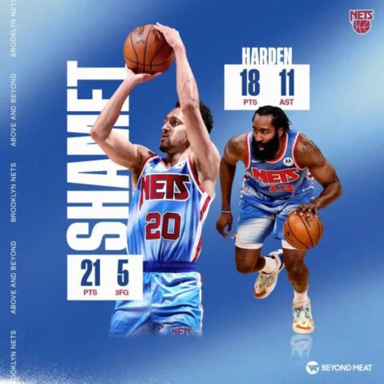 可惜的是,哈登回归之时凯里欧文却因面部挫伤而缺席比赛,“三巨头”合体还是没能上演。