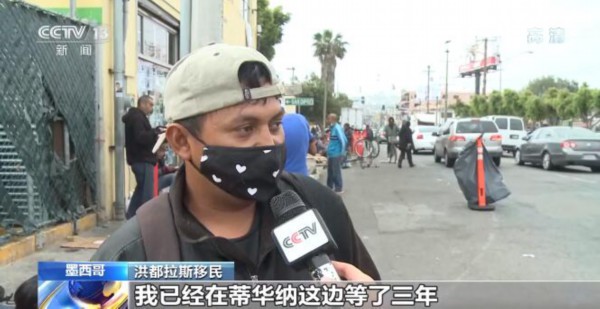 总台记者 盛嘉迪:我现在所在位置是美国和墨西哥边境线上墨西哥一侧的小城蒂华纳,具体位置是当地一处民间自发组织的救助站,距离美国和墨西哥的边境线不足200米。现在这里难民排起长队领取早饭。像这样的移民聚集的情况在墨西哥这一侧的边境线上已经是越来越严重,特别是今年的早些时候,拜登政府上台之后对于移民政策提出了一些变化和反复,有很多来自中南美洲的的移民没办法进入美国申请庇护。大量的移民聚集也给当地造成了治安方面的问题,特别是在疫情的大环境下,墨西哥仍然面临新冠疫情的严重考验。
