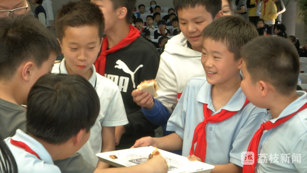 青年儿童文学作家刷刷老师也来到活动现场,向金中实小的孩子们赠送书籍。刷刷老师的作品《八十一棵许愿树》,是金中实小认养枣树活动的缘起,孩子们通过阅读这本小说,了解到新疆的美好,了解到南京和新疆两地儿童共同守护一片枣树林的故事,并且共同参与到保护枣树林的行动之中,还与新疆当地的小朋友互寄明信片和礼物,成为了知心好朋友。