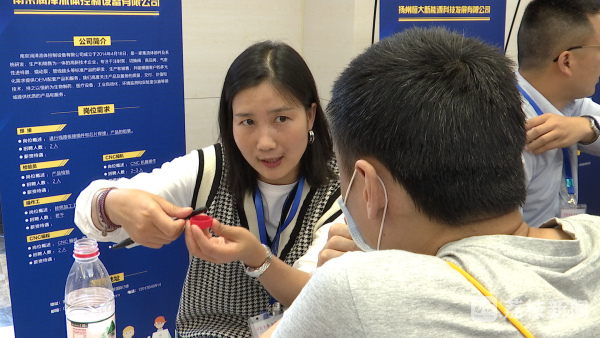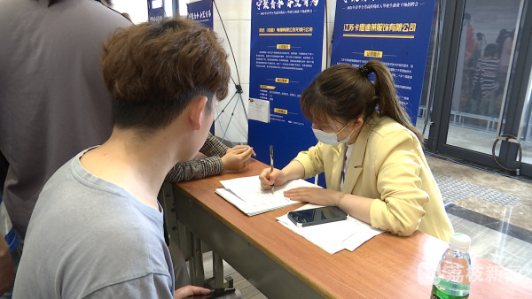 南京特殊教育师范学院教育科学学院应届毕业生吴潇,今天一早就在同学的陪伴下来到了招聘会现场,经过一番沟通,她与江苏京东信息技术有限公司初步达成了客服顾问的就业意向。