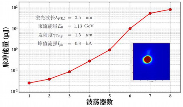 SXFEL试验装置已于2020年11月通过国家验收;随后基于试验装置进行了升级改造和总体集成,形成了全新的SXFEL装置,包括:1台光阴极注入器驱动的高性能C波段电子直线加速器、2台束团压缩器、2条50米长的波荡器线、2条光束线以及5个实验站。电子束最大能量为1.5吉电子伏特,发射度为1.5微米弧度,峰值流强超过800安培,束团电荷量超过500皮库。SXFEL团队于2021年3月底完成了直线加速器的调试,之后以国际少有的速度相继实现了5.6纳米、3.5纳米、2.4纳米和2.0纳米自由电子激光的出光放大,输出性能优异。