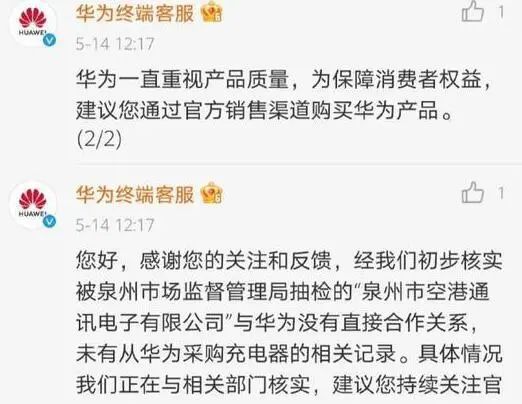 同时,华为强调,一直重视产品质量,为保障消费者权益,建议用户通过官方销售渠道购买华为产品。