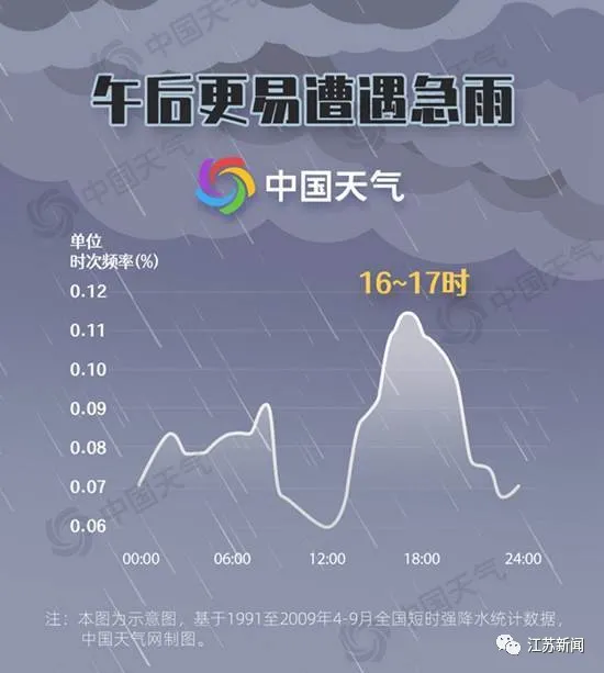 短时强降水一般是指1小时降水量达到或超过20毫米的降水。一天当中,短时强降水最活跃的时段是午后16-17时。