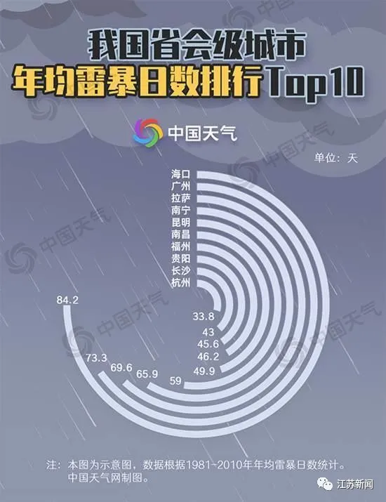 雷电是伴有闪电和雷鸣的一种雄伟壮观而又令人生畏的放电现象。省会级城市中,最“招雷”的当属海口,平均一年中有84.2天能听到雷声,也就是说大约每4天雷声就会来海口打卡一次。