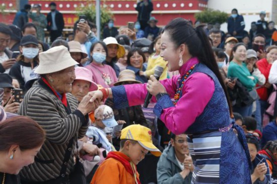 在下乡途中,德西美朵不仅给群众演唱,而且还积极向当地老百姓学习民歌。她说:“我希望可以通过我的演绎让更多人听到西藏群众的声音。”