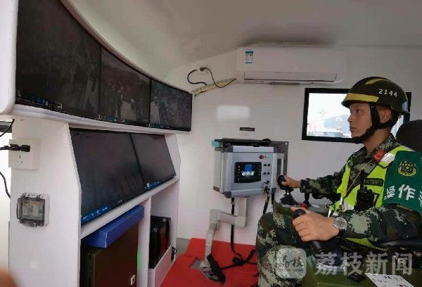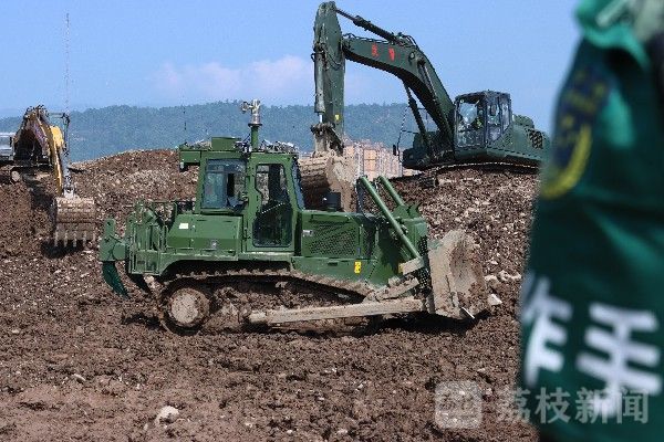 在断通道路抢通现场,该部的新型遥控推土机首次亮相。根据其操作手介绍,遥控推土机列装三个多月,有着更开阔视野和更灵敏的操作性能,在保障操作手安全的情况下,极大地提高了遂行急难险重任务的能力。