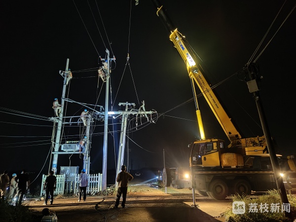 17时15分,一支20余人的抢修队赶到。此时,雨势已暂停,现场布置完安全措施,抢修人员根据前期商讨出的抢修方案,按步骤抢修,直至次日零晨0时20分, 经过7小时连夜抢修,故障消除,确保了鱼塘和居民及时用电。