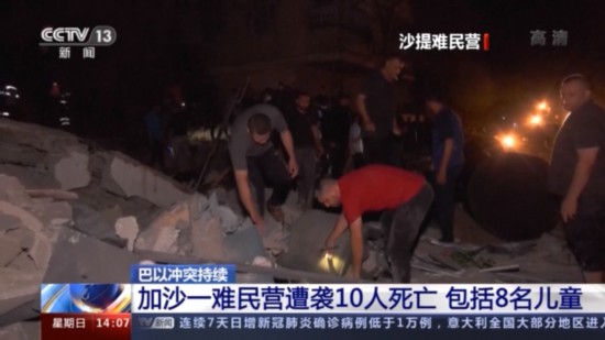 哈马斯内政部门15日表示,以色列战机当天凌晨轰炸并摧毁了沙提难民营的一幢住宅,造成至少10名巴勒斯坦平民死亡,其中包括8名儿童。