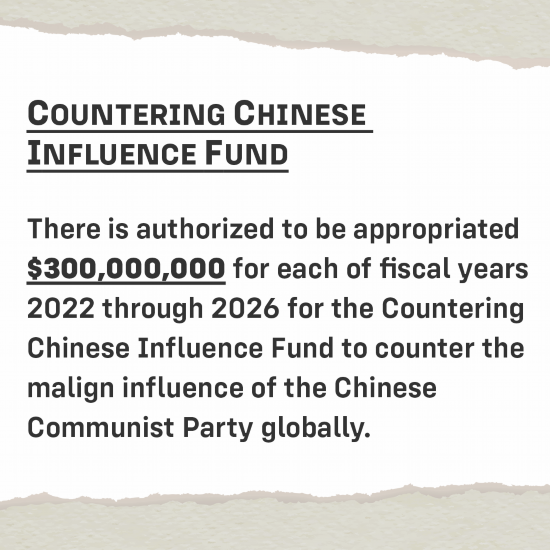 ▲2021年4月,美国国会参议院外委会通过“2021战略竞争法案”,其中提出要在2022至2026财年每年拨款3亿美元用于“应对中共恶意影响”。
