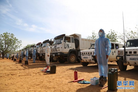 5月16日,在苏丹法希尔,中国第16批赴苏丹达尔富尔维和工兵分队官兵准备接受核查。