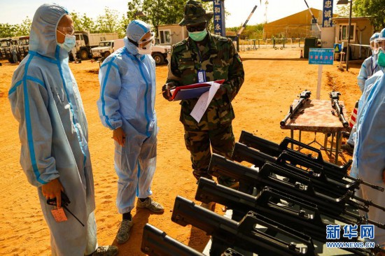 5月16日,在苏丹法希尔,核查组工作人员核查中国第16批赴苏丹达尔富尔维和工兵分队的枪支。