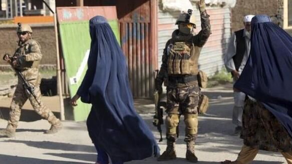 资料图:阿富汗安全部队5月14日在喀布尔遭袭清真寺外执勤