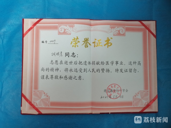 当天上午11点,胡现彦女士遗体捐献接收仪式和告别仪式准时举行。南京医科大学康达学院接收了胡现彦女士遗体,按照她的遗愿,遗体无偿捐赠用于医学科学研究。至此,她的生命以另一种方式得到了“延续”, 胡现彦女士也成为连云港市第29例、灌云县第6例遗体成功捐献志愿者。