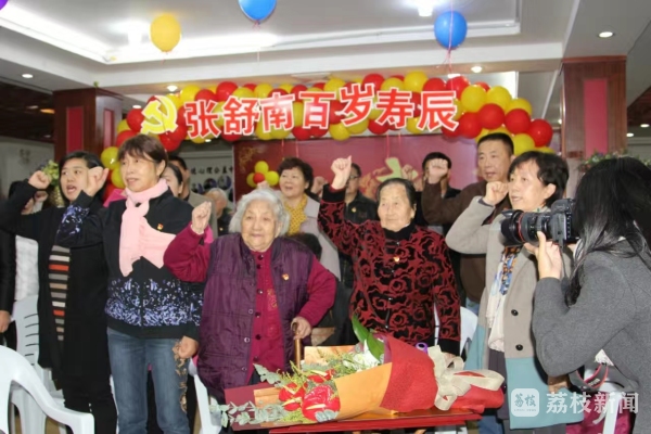 “姑娘,车子快到了吧?快,我们下楼等!” 104岁老党员张舒南知道要拍照,早早就开始催着女儿王锡平,和自己一起参加社区党员全家福的拍摄。张舒南今年党龄82年,是目前镇江党龄最长的女党员。迎江路中心社区组织拍摄党员全家福,张舒南在年过百岁的情况下一年不落,坚持参加,成为全家福中最年长的“大当家”。