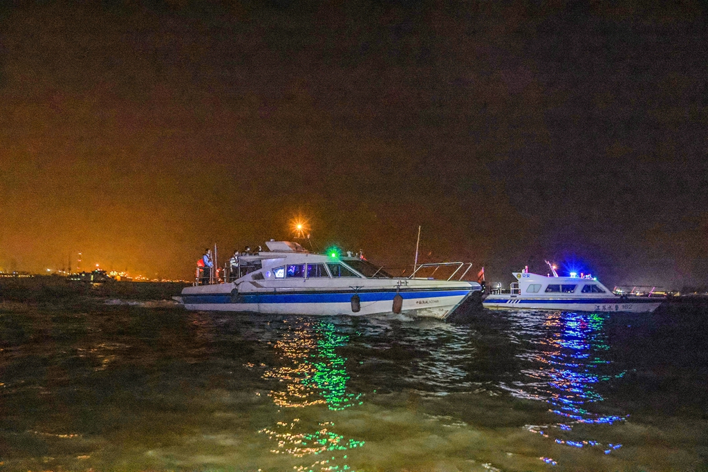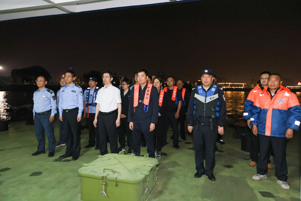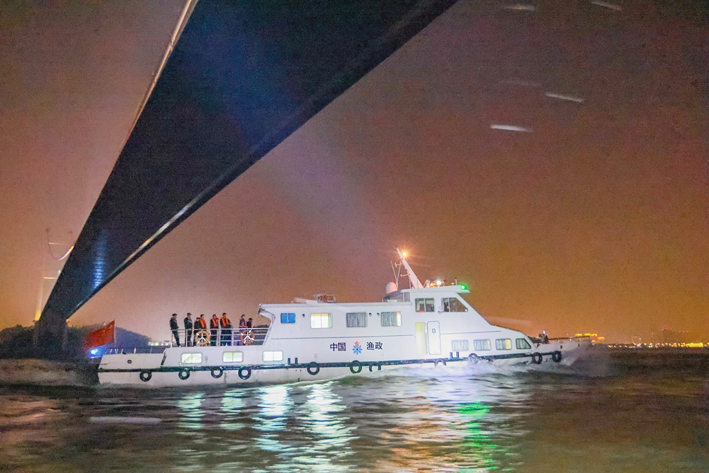 “出发!”5月19日零点,长江禁捕靖江江阴同步“零点行动”准点开始。中国渔政32285号、32430号、32348号和江苏水警162号执法船在接到出发指令后,鸣笛回应,随后从江阴大桥附近水域出发,对长江靖江段、长江江阴段部分水域展开联合执法。