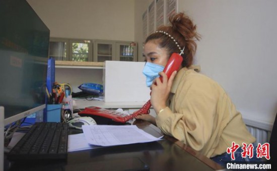 图为社区志愿者马青青(右)。营口市委宣传部供图