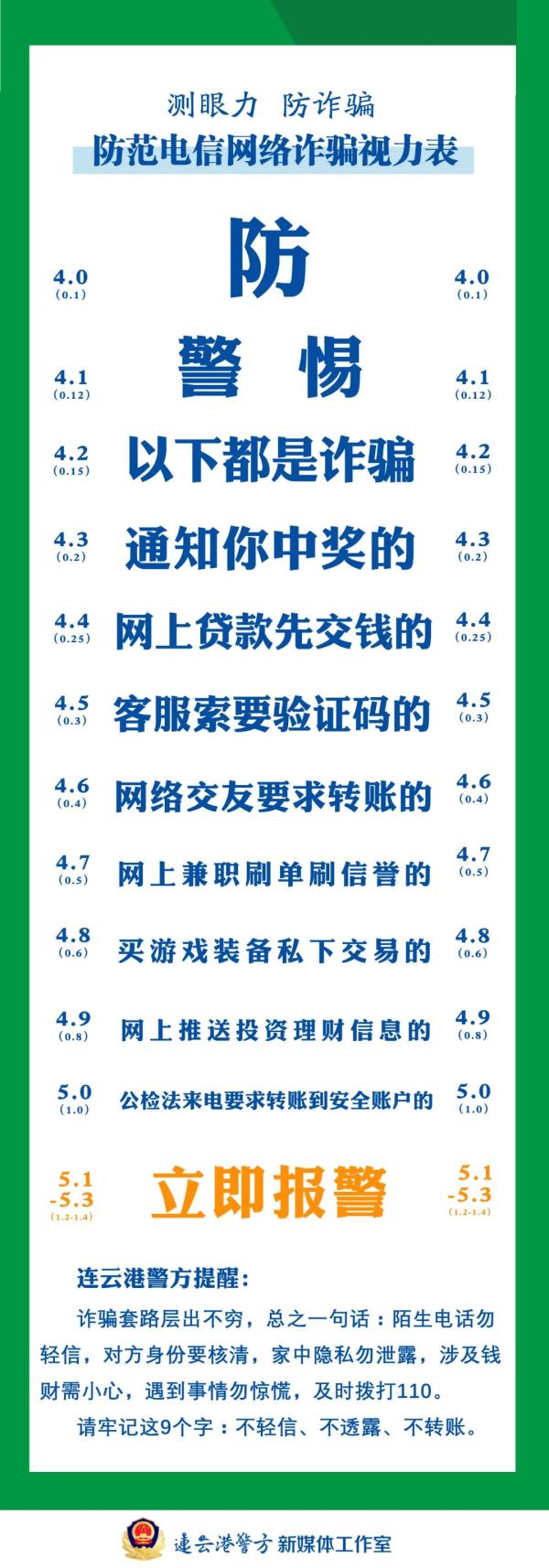 连云港警方提醒:信息时代,骗子借着互联网伺机行骗,各类诈骗活动层出不穷,但很多市民平时觉得诈骗离自己很远,所以根本不当回事。针对时下网络电信诈骗案频发,市民一定要提高自身反诈意识,遇到可疑情况或遭遇诈骗,请立即拨打110或连云港市反诈中心电话0518-81861922进行报警、咨询。