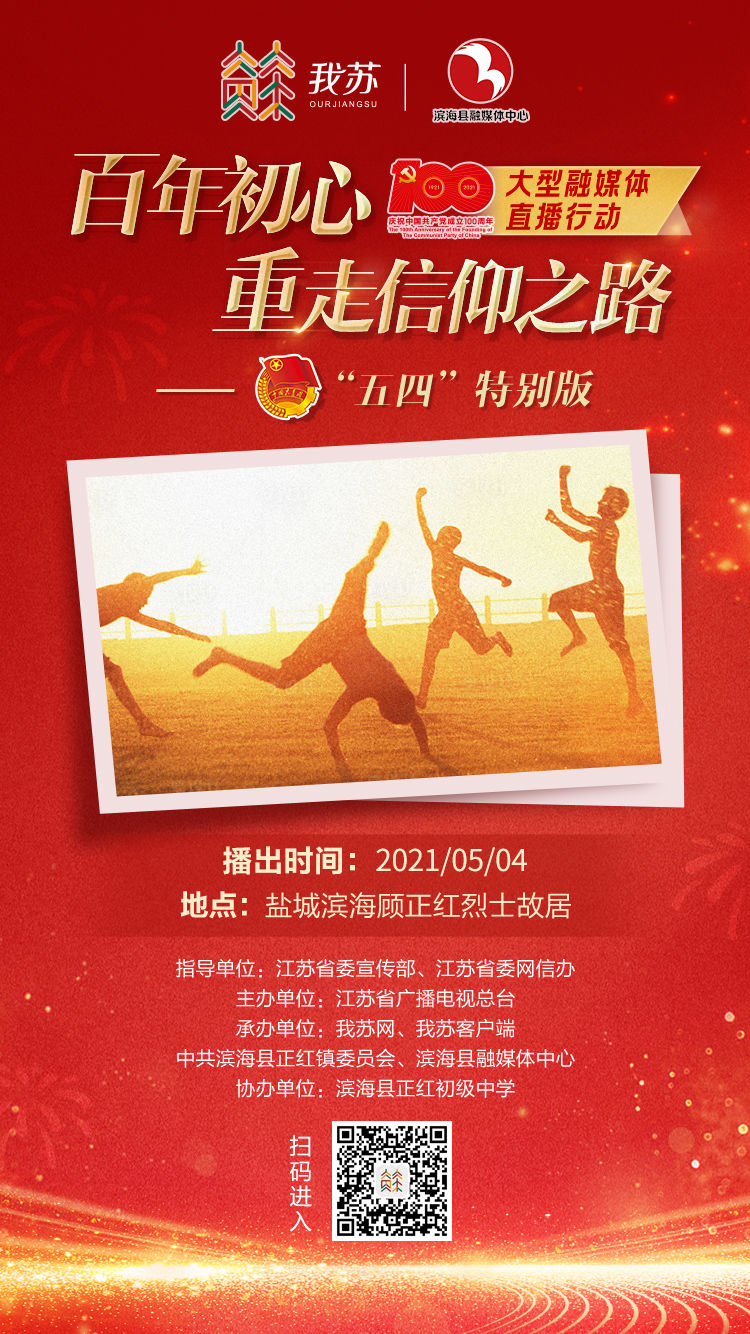 5月4日,《百年初心 重走信仰之路》大型融媒体直播行动走进盐城滨海,在革命纪念地追寻红色记忆,厚植革命烈士爱国情怀。弘扬五四精神,激励青少年矢志奋进新时代。