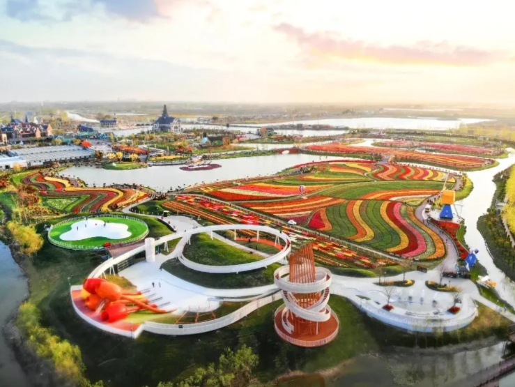 景区主要依托老斗龙港自然生态景观,融入“田园、河网、木屋、风车、花海”等设计元素,深挖历史底蕴,形成了以观光旅游、婚纱摄影、花卉种植和健康养生于一体具有异域风情的花海。该景点为国家4A级景区、全国五星级休闲农业与乡村旅游企业(园区),花海以郁金香为特色,是国内种植郁金香面积最大、品种最多郁金香花海,先后获评“中国郁金香第一花海”“世界郁金香最佳景区”“中荷郁金香科研基地”称号,成为新人神圣爱情的见证之地。