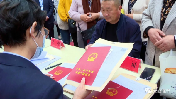“为了保证群众及时领到不动产权证书,我们采取容缺机制,提前介入,我们将把交房即发证这项工作做到常态化,促进睢宁房地产市场健康发展。”睢宁县自然资源和规划局不动产登记交易服务中心受理科科长王维全说。