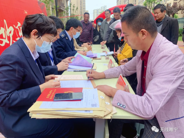 睢宁县自然资源和规划局不动产登记交易服务中心、国家税务总局睢宁县税务局将办证服务搬到现场,实现了睢宁县安置小区新建房地产“交房即发证”项目。