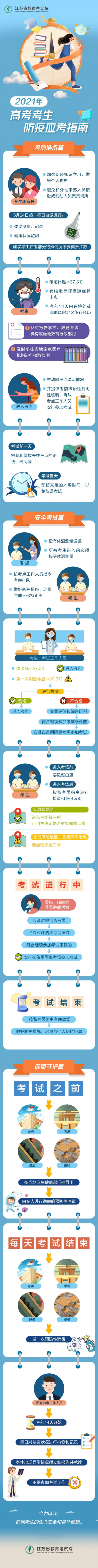 江苏省2021年普通高校招生全国统一考试将于6月7日至9日进行,为保障广大考生和考试工作人员的生命安全和身体健康,共同营造良好的考试环境,考生健康应试须知如下: