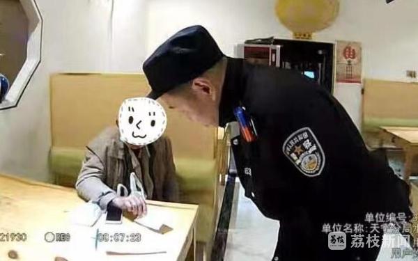 民警陪着老人边聊天边等待无锡当地派出所的到来,在聊天中民警得知,老人幼时得过小儿麻痹症,一直身体不好,家里只有一个妻子一个儿子,两个人都有智力障碍无法谋生,一家老小的生活重担都压在邹老一个人身上,可以说是家徒四壁,所以老人才会75岁高龄还跑到外面来找活干。