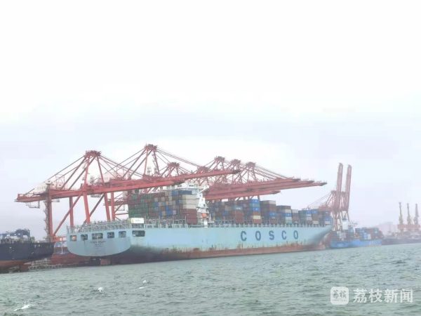 近日,船长350米的“中远希腊”轮,在连云港港接卸6124标箱后,缓缓驶离新东方国际货柜30泊位,开启了连云港至美东航线的首航之旅。这是连云港港做强国际枢纽港的又一有力举措,也是扎实推进党史学习教育,为客户办实事的崭新成果。