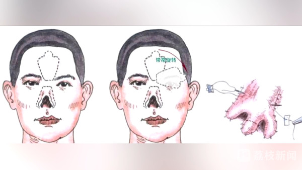 南京市第二医院整形外科副主任医师刘宁说:“一个是要有一定的厚度,第二个颜色要相近相匹配,比较经典的手术方式就是从额头取一个带蒂的皮瓣,给它转移下来覆盖在鼻头,这样既有饱满圆润的外观,同时跟他自己鼻子的皮肤颜色非常匹配,这样能够达到比较好的术后效果。”