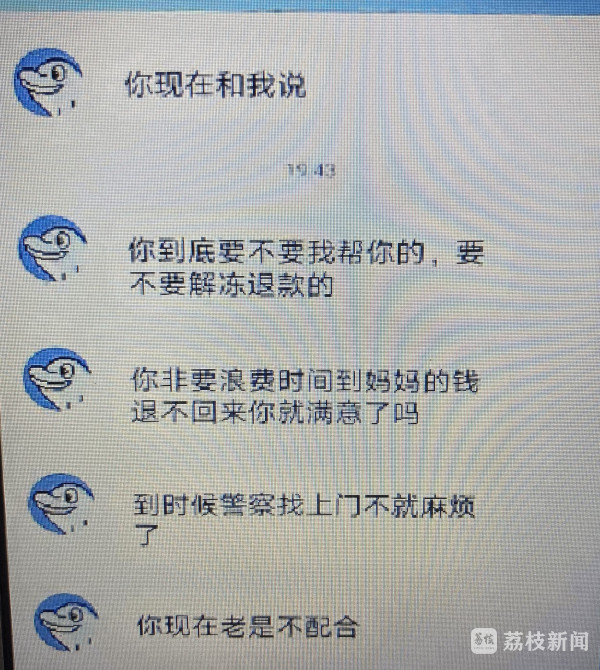 经了解,当天刘女士的女儿小孔在家用妈妈的手机上网课。期间,有一个陌生QQ号不断添加好友,小孔就点击通过了。对方自称是“公安民警”,得知小孔是一名学生就告诉她,因为她的父母涉嫌诈骗,银行账户已被冻结,如果不及时解冻,小孔的父母可能面临牢狱之灾。
