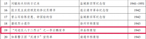 在公布的江苏省百件红色珍档入选名录中