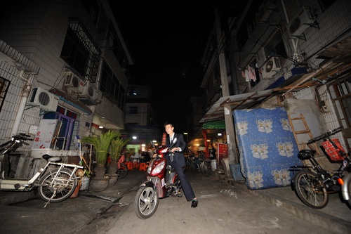 (杭州的一名25岁的房产中介,为了多等到些客户,常常加班。新华社记者 韩传号 2010年10月24日摄)