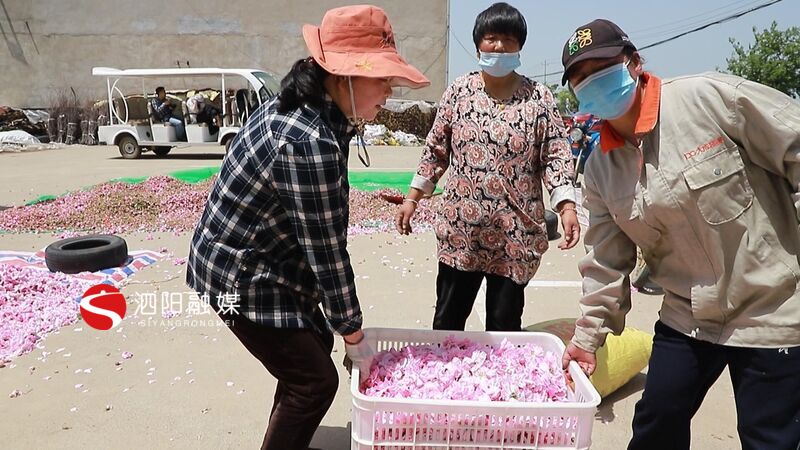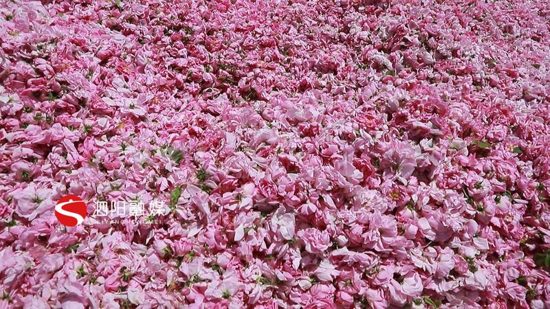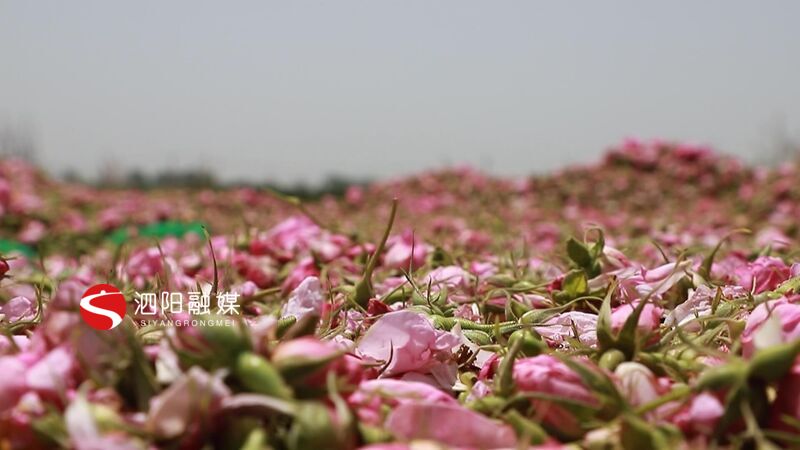 收购商 马洋:玫瑰的花骨朵就是做成花茶,大的花是提炼精油花露精油之类的。采摘产量每天应该在六七千斤,每天亩产大概180到200斤。