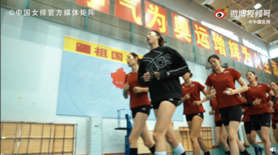 图说:女排姑娘在训练中