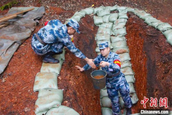 正午时分,烈日当头。为保证任务进度,官兵们持续奋战。厚重的头盔晒得滚烫,贴身的防弹衣湿得通透,可大家丝毫不敢放松,依然坚守在各自的岗位。