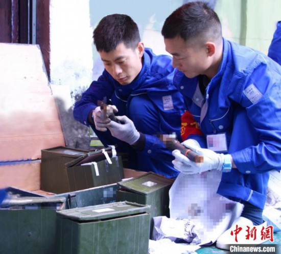 销毁前检查报废弹药包装情况。曾志伟 摄