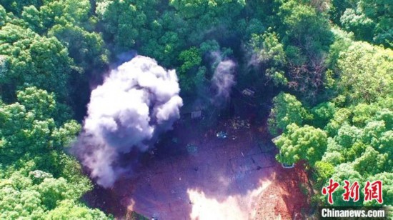 中新网长沙5月20日电 (周果 何经纬)“3、2、1,起爆!”随着最后一轮炸药轰隆一声巨响,销毁作业现场硝烟四起,宣告了空军某部此次历时3天的退役报废弹药销毁任务圆满结束。