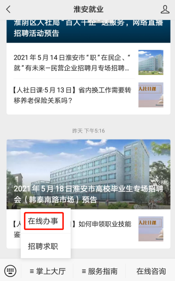 “淮安就业”微信公众号