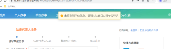 三、单位注册时,提示“未查询到单位信息”如何办理?