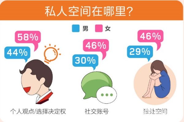 爱情不应该过度进行捆绑,彼此相爱的两个人,都需要让对方留有私密空间。报告显示,34%的单身男性与56%的单身女性认为,在恋爱中,属于自己的私人空间非常重要。其中未婚无恋爱经历的女性尤为看重私密空间的存在,占比高达68%。