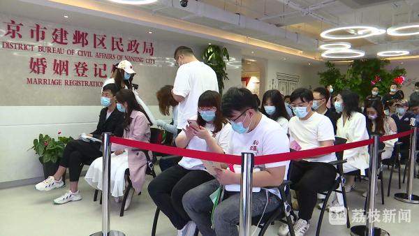 记者了解到,建邺区民政局婚姻登记处今天每小时要为50对新人办理结婚证,包括通过网上预约的150对新人外,今天预计有400对新人在这里完成登记。通过预约的新人们可以制作特别的香薰,而没有预约上的,婚姻登记处也将举行两场颁证仪式,进行集体颁证。