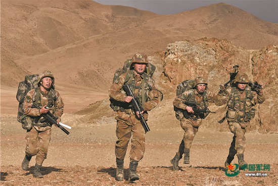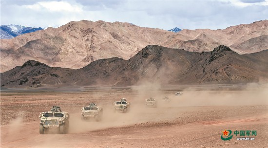 喀喇昆仑高原,狂风呼啸,沙尘漫天。新疆军区某合成师侦察兵不畏艰险,在恶劣环境中展开实战化训练。