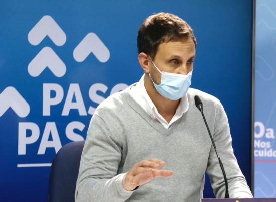 5月17日,在智利圣地亚哥总统府举行的新闻发布会上,智利卫生部顾问阿劳斯宣布更新的中国科兴新冠疫苗在该国“真实世界研究”中的保护效果。新华社发(智利卫生部供图)