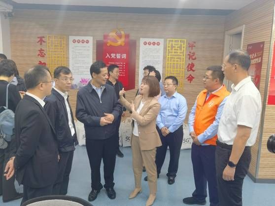 5月19日上午,正在南京调研的中国联通集团公司党组副书记李福申来到雨花台区西善桥街道永盛社区党群服务中心,在雨花台区民政局基层政权和社区治理科科长邹巍巍、社区党支部书记陈萍的陪同介绍下对社区进行了系统参观,与在场工作人员及老人热情交谈,并对当前开展的“我来教您用手机,万名老人免费学”活动给与高度赞扬与评价。