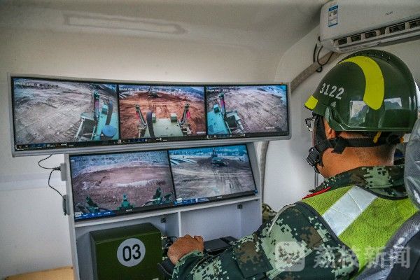 此次地震应急演练的亮点,要数该部的无人驾驶挖掘机。该机能够实现人机分离、远程操控,无线作业距离达1100米,并能够实时监控现场环境,完成火灾、染毒地带和危险道路下的救援作业,具有更开阔的视野和更灵敏的操作性能,在保障安全的前提下,极大提高了遂行抢险救援任务的能力。