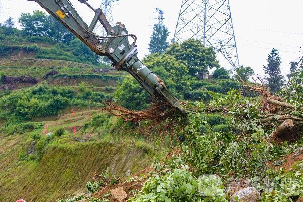 秭归迎宾路段一处山体垮塌,车辆人员受困……在现场指挥部的导调下,一辆多功能一体车紧急前出,对散落树木和电线杆进行切割作业。据操作手介绍,该装备配备有不同液压动力装置,既可以进行挖掘、装载作业,还可进行起重、牵引,破碎和锯割木材作业,在各项抢险救援任务中具有作业速度快、效率高、机动性好、操作轻便等优点。