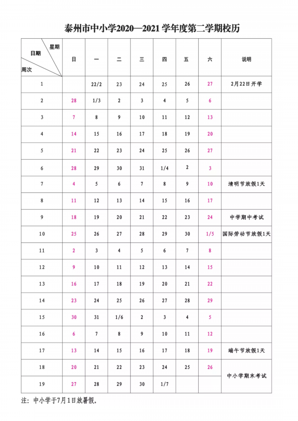 那么,泰州的中小学从什么时候开始放暑假呢?根据泰州市教育局发布的2020-2021校历通知