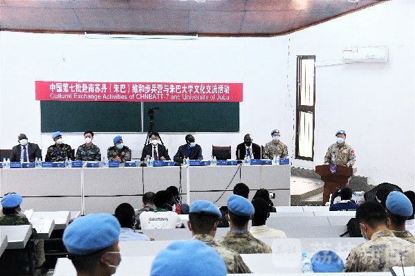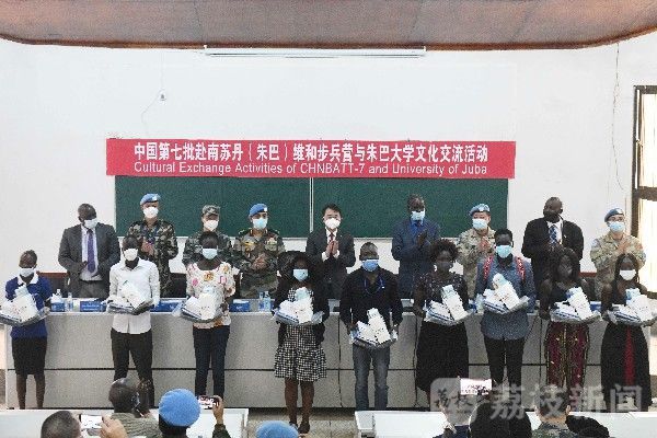 当地时间5月19日上午,根据联南苏团军民协调任务安排,中国第7批赴南苏丹(朱巴)维和步兵营青年代表,在中南建交10周年之际,走进历史悠久的南苏丹最高学府朱巴大学,在严格落实疫情防控措施的前提下,与青年学生代表开展文化交流和人道主义援助活动。此次活动由我维和步兵营和朱巴大学联合主办,中国驻南苏丹华宁大使、联南苏团部队司令、朱巴战区代理司令等相关代表全程参加活动。