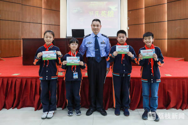 “聆听了英雄民警贺伯伯的事迹,我学习到我们要从小学英雄,长大做英雄,将来成为一个对社会有贡献的人。我还从警察叔叔的课中,知道了防范电信诈骗的重要性,回去我要和爸爸妈妈、爷爷奶奶说。”四(2)学生王泽灿如是说。